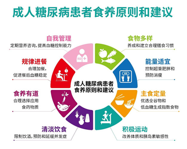 针对糖尿病患者的日常食养,《指南》提出8条原则建议,包括:一、食物多样,养成和建立合理膳食习惯;二、能量适宜,控制超重肥胖和预防消瘦;三、主食定量,优选全谷物和低血糖生成指数食物;四、积极运动,改善体质和胰岛素敏感性;五、清淡饮食,限制饮酒,预防和延缓并发症;六、食养有道,合理选择应用食药物质;七、规律进餐,合理加餐,促进餐后血糖稳定;八、自我管理,定期营养咨询,提高血糖控制能力。