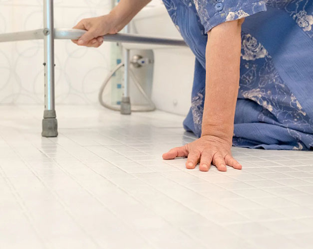 50%的老年人跌倒都发生在家里,最常见的是在浴室滑倒摔伤,或者上厕所时,起身或往下蹲的时候站不稳摔倒,甚至在起床时没站稳都可能造成摔倒摔伤。